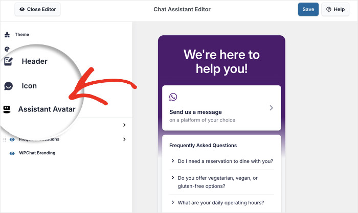 To customize how it looks, click on the Assistant Avatar option on the left.