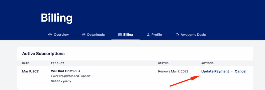 If you’re using a credit card for your WPChat subscription, you can easily update your payment information by following these steps:
