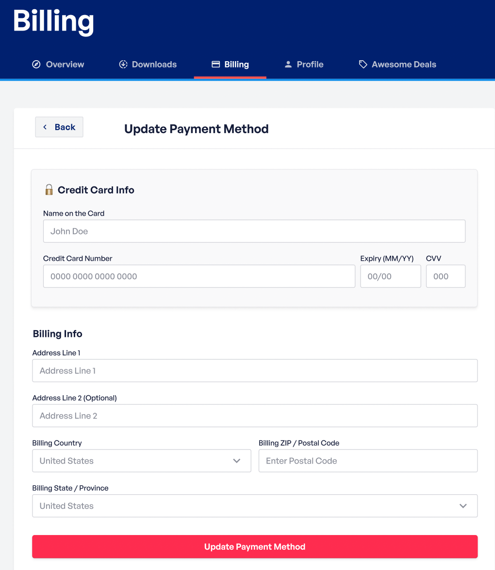 4. You can now enter your updated billing info.
