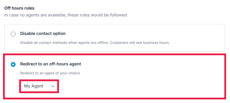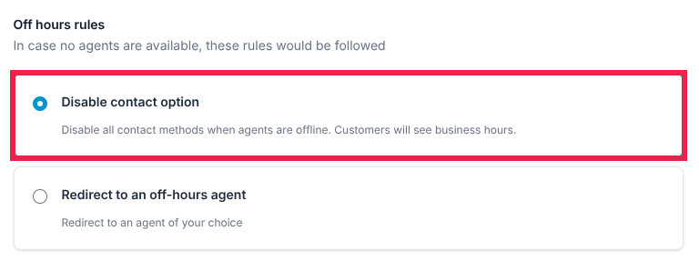 If you select this, all contact methods will be disabled while your agents are offline. Customers will see your business hours.