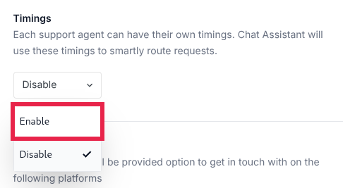 Here you can set which messaging platforms you use to receive messages from customers. You can disable any platforms you do not want to use.