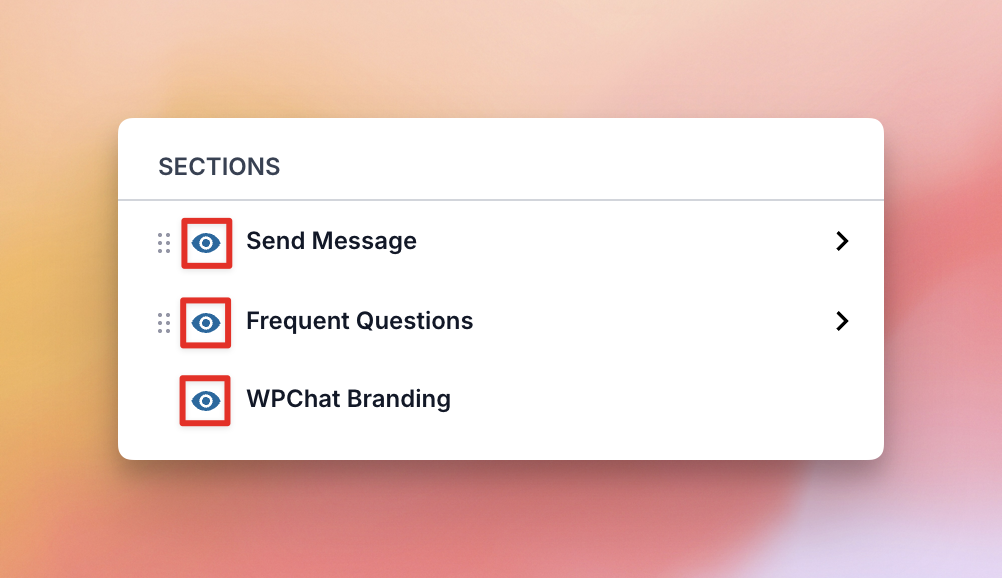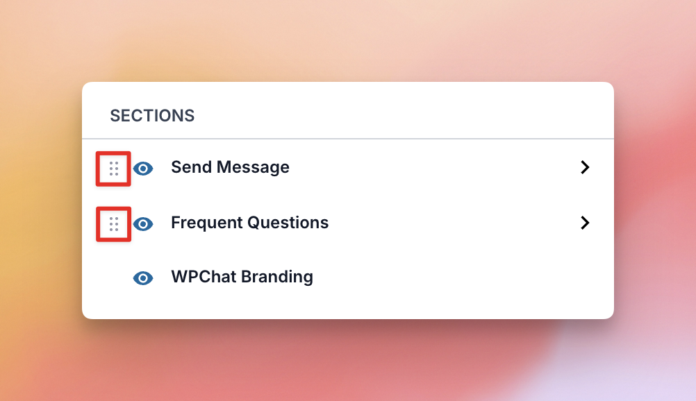 With this option, you can change the order of the chat widget sections, hide or show sections, or change the settings of each section.