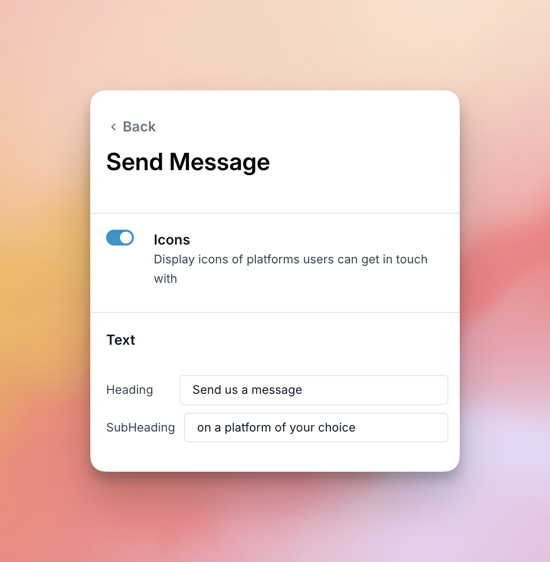 Here you can choose to hide or show the icons within the Send Message section, or change the heading and subheading text.