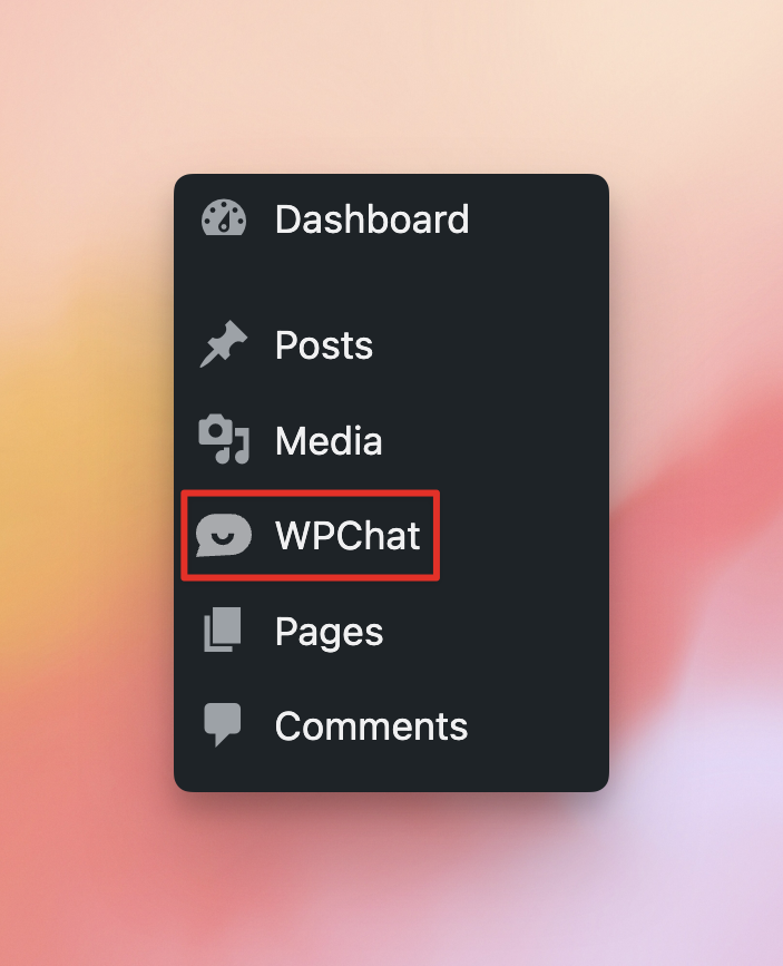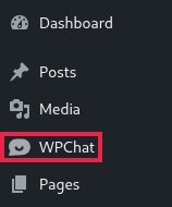1. Now that you’ve installed the plugin, click the WPChat menu item that has been added to the left menu bar of your WordPress Dashboard