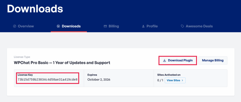 2. Click Download Plugin to download the ZIP file for the Pro plugin. You can also find your License Key here.