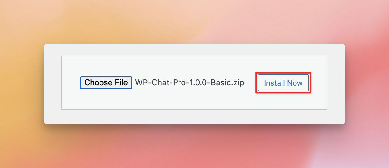 4. Click Choose File, select the plugin ZIP file you downloaded, and click Install Now.