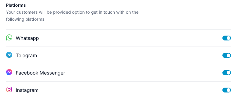 You can also turn messaging platforms (WhatsApp, Telegram, Facebook Messenger, Instagram) on and off.