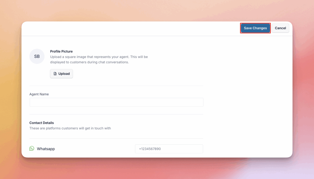You can change the Agent Name, Contact Details, or Profile Picture. Click Save Changes when you’re finished updating the agent details